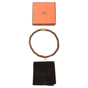 Delivery Duty Paid included – Elevate your accessories with quiet luxury. The Hermès Choker Necklace in supple brown leather and 18K yellow gold-plated brass captures the house’s equestrian heritage with a sleek, minimalist twist. Understated yet undeniably luxe, this piece wraps gracefully around the neck—effortlessly blending French craftsmanship with modern sophistication.