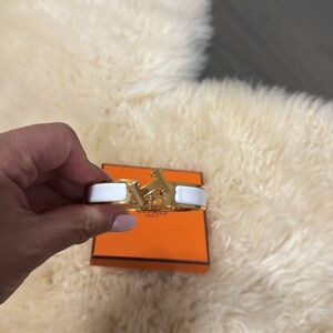 This bracelet opens and closes thanks to an ingenious toggle clasp which reveals an "H".