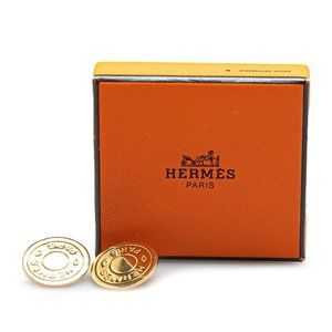 Brand: Hermès Model: Clou de Selle Color: Gold Material: Gold Plated Inclusions: Box Dimensions: Size (HxWxD) 19.90mm x 19.90mm Serial number: None Country of origin: France Condition: B - good condition. Traces of usage, scratches, green rust slight/ dirt can be seen but generally in good condition. TBC reference (SKU): 1747770183449088 - Size (HxWxD) 19.90mm x 19.90mm