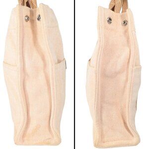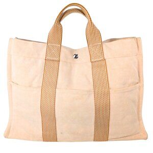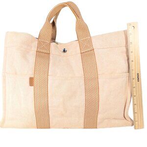 Hermes peach cotton canvas Fourre Tout MM tote bag w/ stripe handles & silver-tone branded hardware.