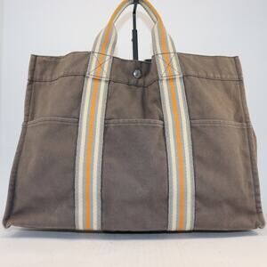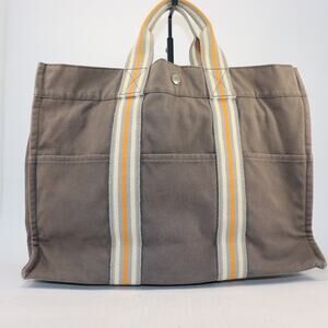 Hermès Fourre Tout PM Tote Bag Gray Canvas Tan Stripes