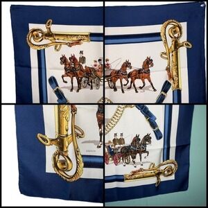 Hermès HERMES "EQUIPAGES" Carre 90cm Square Silk Scarf Navy