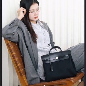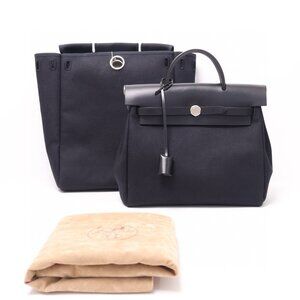 Hermès Herbag Ado Backpack with Extra Canvas Body All Black
