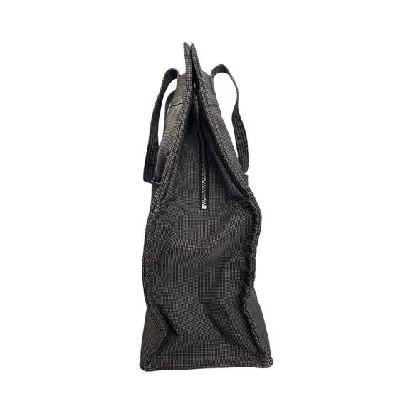 Authentic Hermès Herline Tote GM in gray checked canvas with signature woven “H” web straps and silver-tone hardware. This spacious unisex carryall features a double zipper closure that can accommodate an Hermès padlock, a hallmark of the line’s utilitarian-luxury design. Snap sides expand the silhouette for travel or work.