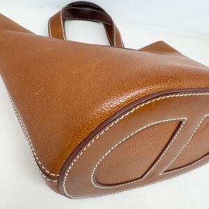 Exterior leather signs of wear throughout. Handle leathers slightly darkened. Interior bottom leather has some hairline scratch marks.