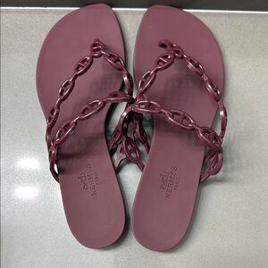 The toe and top straps feature a rubber chain effect in shiny and matte burgundy.