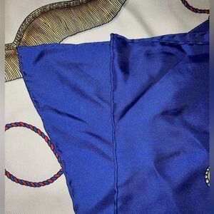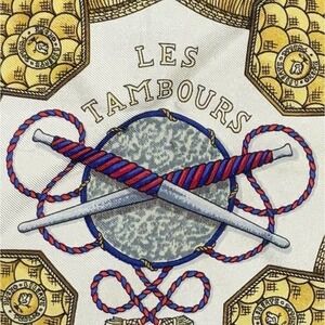 Hermès Les Tambours 100% Silk Scarf. Blue