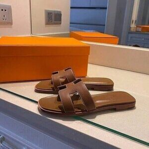 Hermès Oran Sandals Gold Tan Leather H Slides