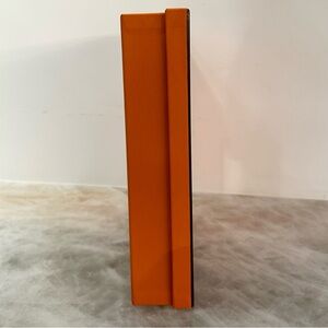 Elegant Hermès box for dessert plate in vibrant orange. Perfect for storage or gifting.