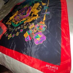 Hermès Paris Black and Red Silk Scarf