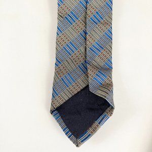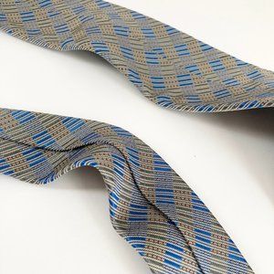 This gorgeous blue silk tie from Hermès is 100% silk with blue check pattern and complimentary hints of a green/yellow hue with subtle red accents. In like-new condition.