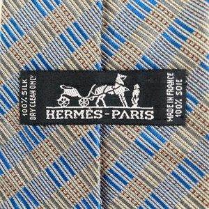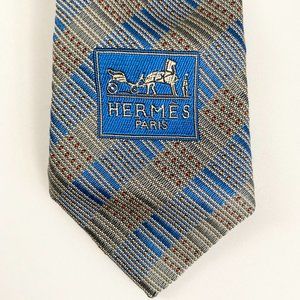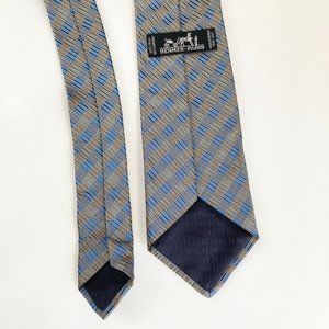 Hermès Paris Blue Check Pattern Silk Tie for Men