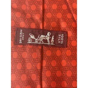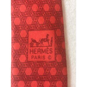Hermès Paris Mens Red Geometric Pattern 100% Silk Tie