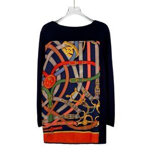 Hermès Paris Multicolor Chain Print Silk & Cashmere Long-Sleeve Pullover Top Siz