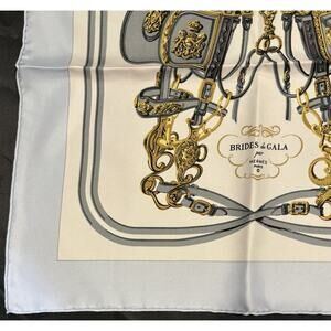 Hermès Pocket Square Silk Scarf Brides de Gala By Hugo Grygkar Lt Blue Gray New