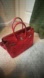 Elegant Hermès handbag in rich rouge garance Togo leather. Features classic design with sturdy handles.
