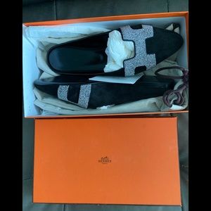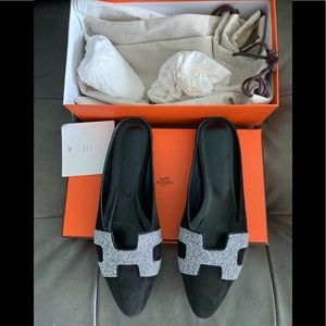 Authentic NIB Roxane Crystal powder,velvet goat mules,pictures do not do these shoes justice,comes with box,dust bag,Hermès card insert.
