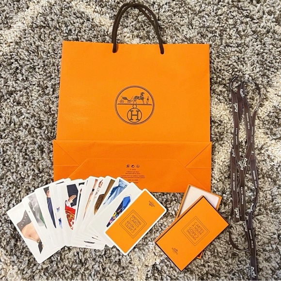 Hermès shopping bag, includes a set of cards on scarf styling instructions and ribbons.