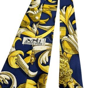 Hermès Silk Mors et Filets Print Mens Tie with Blanc Matt Overlay Twill