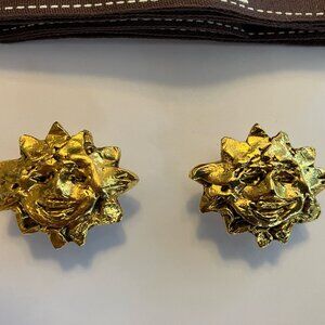 Vintage HERMES gold tone smiley sunshine face earrings. Fun and unique jewel piece from Bijouterie Fantaisie collection.