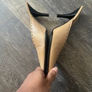 Hermès Tan Leather Stitched Trim Mule Heels, Sz 38 / 7.5