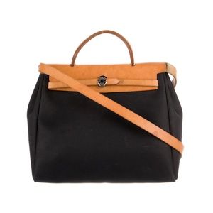 * Hermès Crossbody Bag with black and tan canvas changeale options