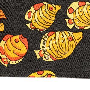 Used Hermès Twilly Recontre Oceane Scarf, Black and Multicolor Silk, Women's, HERMES (SKU: GZl1bn3z)