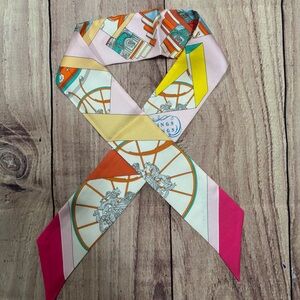Hermès Twilly Silk Scarf Pink Multicolor Horse Carriage