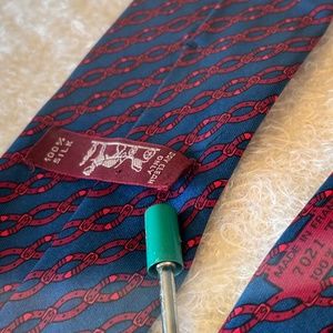 Hermès Vintage Silk Tie Blue Red Interlocking Belt Buckle Motif 100% Silk