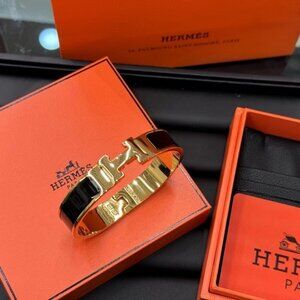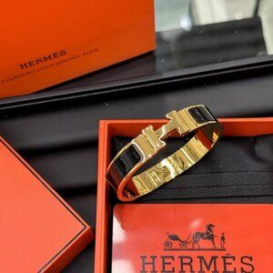 Upgrade your accessory collection with this stunning Hermès Clic H bracelet in black and white enamel. A timeless classic from Hermès Paris, this iconic bracelet features the classic "H" clasp and intricate enamel detailing. Elegant and chic, it's perfect for everyday wear or special occasions.