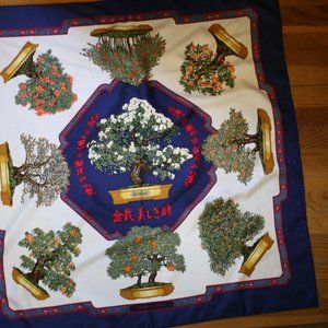 Vintage Hermès "Bonsai" silk carré scarf. This beautiful design has never been reissued. Navy/white/red color scheme. 100% silk with hand rolled edges. Made in France. In great condition.