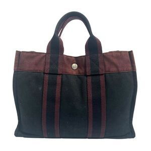 Hermès Canvas Tote Bag Classic Fourre-Tout Model Black and Burgundy