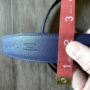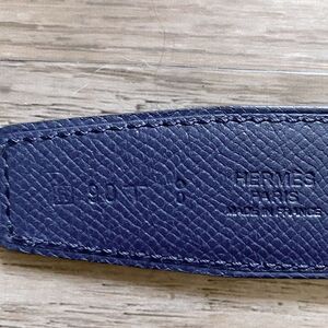 Authentic Hermès 32mm reversible belt in navy pebbled epsom calfskin and smooth green calfskin. Strap is 90cm & fits waist size 33-36.5 inches. In like new condition. Box for pictures only.