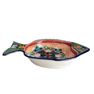 The dish is from Mexico and depicts a colorful fish, which is a popular symbol in Mexican culture. The dish is perfect for collectors of Latin American pottery and those who appreciate the beauty of Mexican art. This unique piece will make a great addition to any collection or home decor.