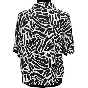 Heroes & Dreamers Zebra Print Linen Blend Boxy Short Sleeve Button Top Large