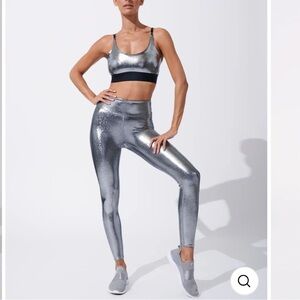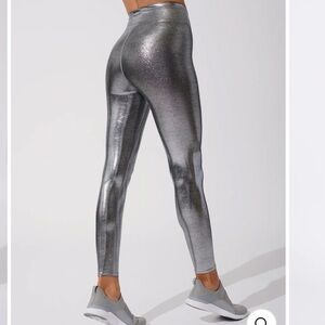 Platinum leggings with a metallic finish. Perfect for a bold look.