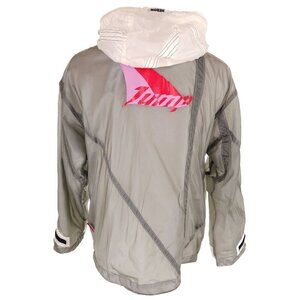 Long sleeve nylon ripstop jacket colorblocked in white and grey.