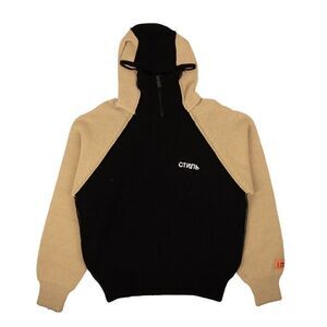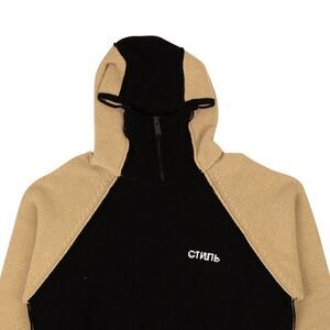 REVERSE CTNMB KNIT HOODIE. Black/camel brown cotton contrast-sleeve knitted hoodie from HERON PRESTON featuring knitted construction.