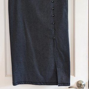 Herringbone Knit Maxi Skirt with Decorative Buttons and Front Side Slit