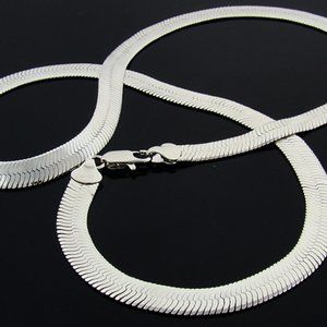 Herringbone Necklace in heavy Rhodium Finish. 24" in Length, 6 MM Wide. lobster claw clasp. Brand new. Gift box. Will not tarnish.