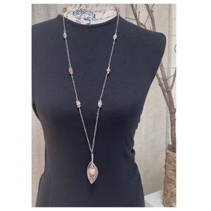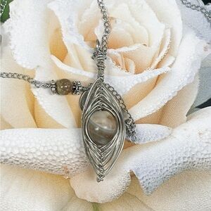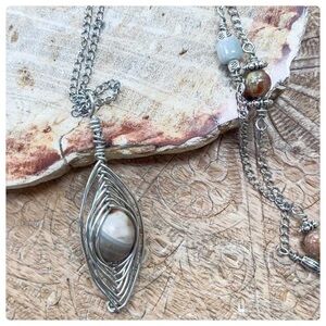 Herringbone Wire Wrapped Agate Stone Necklace handcrafted
