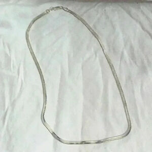 silver herringbone chain measures 20 inches and has lobster claw clasp.