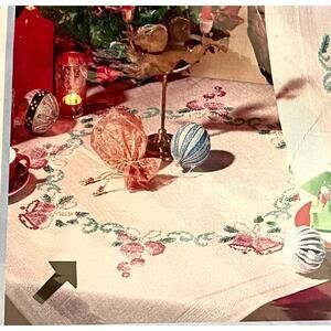 Herrschner's Cross Stitch Kit | Bows and Bells Table Topper 36" Square Holiday