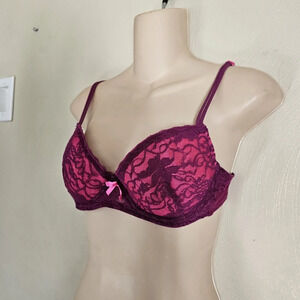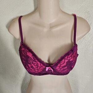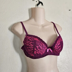 Hers by Herman Lingerie Demi Fuchsia Purple Lace Plunge Bra Size 36B