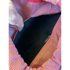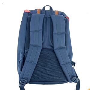 Herschel Navy Canvas Backpack - Red Candy Stripe Lining, Faux Leather Accents