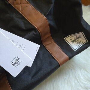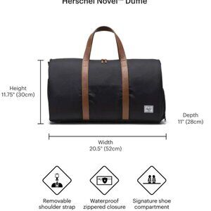 Waterproof zippered closure protects your essentials. Low profile vegan leather handles.