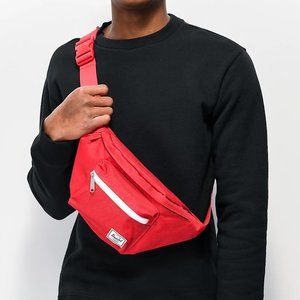 Throw it over your shoulder, snap it around your waist, whatever the case, just know that the Herschel Supply Seventeen red hip pack is fit to accompany you on all your adventures. Adjustable waistband for custom fit. Two zippered pouches.
