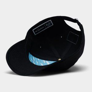 The Sylas Bart strapback hat from Herschel Supply Co. x The Simpsons comes in a black colorway with an embroidered patch on the front of Bart doing skate tricks. For a comfortable fit, this hat features a 100% cotton construction with a strapback sizing piece on the back and eyelets around crown for breathability.
