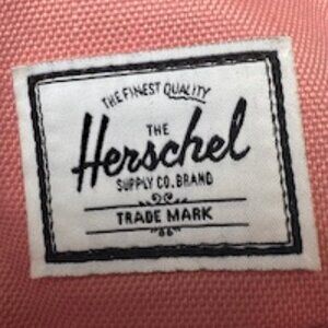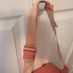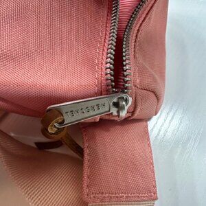The Hershel compact and convenient Fifteen hip pack from Herschel features a single zippered pocket and can be worn around the waist or over the shoulder and comes in a pretty peach with the signature striped fabric liner. It has an exposed zipper with knotted leather pull with adjustable clip-fastened adjustable webbing strap. In excellent pre-loved condition. See dimensions in photos.