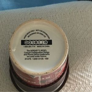Hersheys Kisses Ceramic Coffee/Tea Travel Tumbler 12 ounces with silicone sleeve. Used in good condition. No chips/cracks/crazing. Pet/smoke free home.